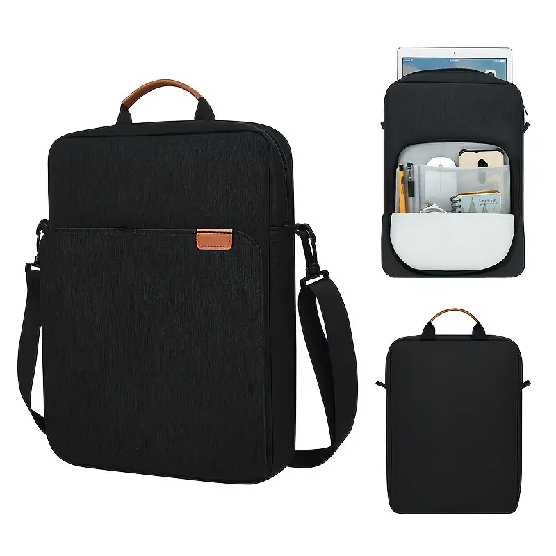 - Doble Compartimento de Almacenamiento: Cuenta con un compartimento principal espacioso, ideal para guardar de forma segura tu tablet de 11 pulgadas. En la parte frontal, encontrarás un compartimento adicional más pequeño con organizadores internos, perfecto para tus accesorios esenciales como bolígrafos, cuadernos, tarjetas y el cargador.